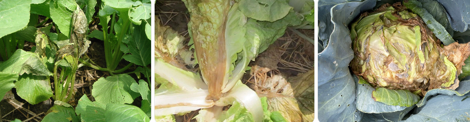 Đây là nhóm bệnh gây thiệt hại nặng nhất trong mùa mưa, thường gặp trên rau ăn lá như cải xanh, cải ngọt, xà lách, bắp cải.