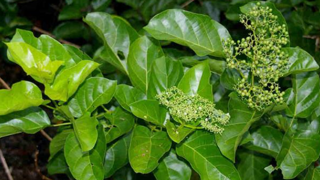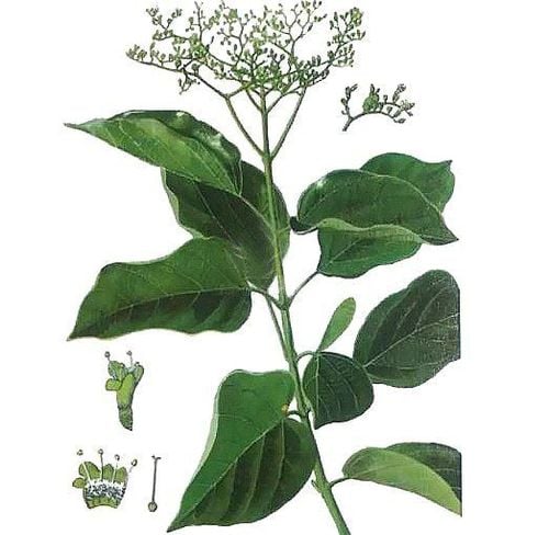 Hoa mọc thành chùm ở đầu cành, hoa nhỏ, màu trắng ngà hoặc vàng nhạt. Quả nhỏ, hình cầu, khi chín có màu đen. Cây sinh trưởng tốt ở vùng nhiệt đới, dễ trồng và ít sâu bệnh.