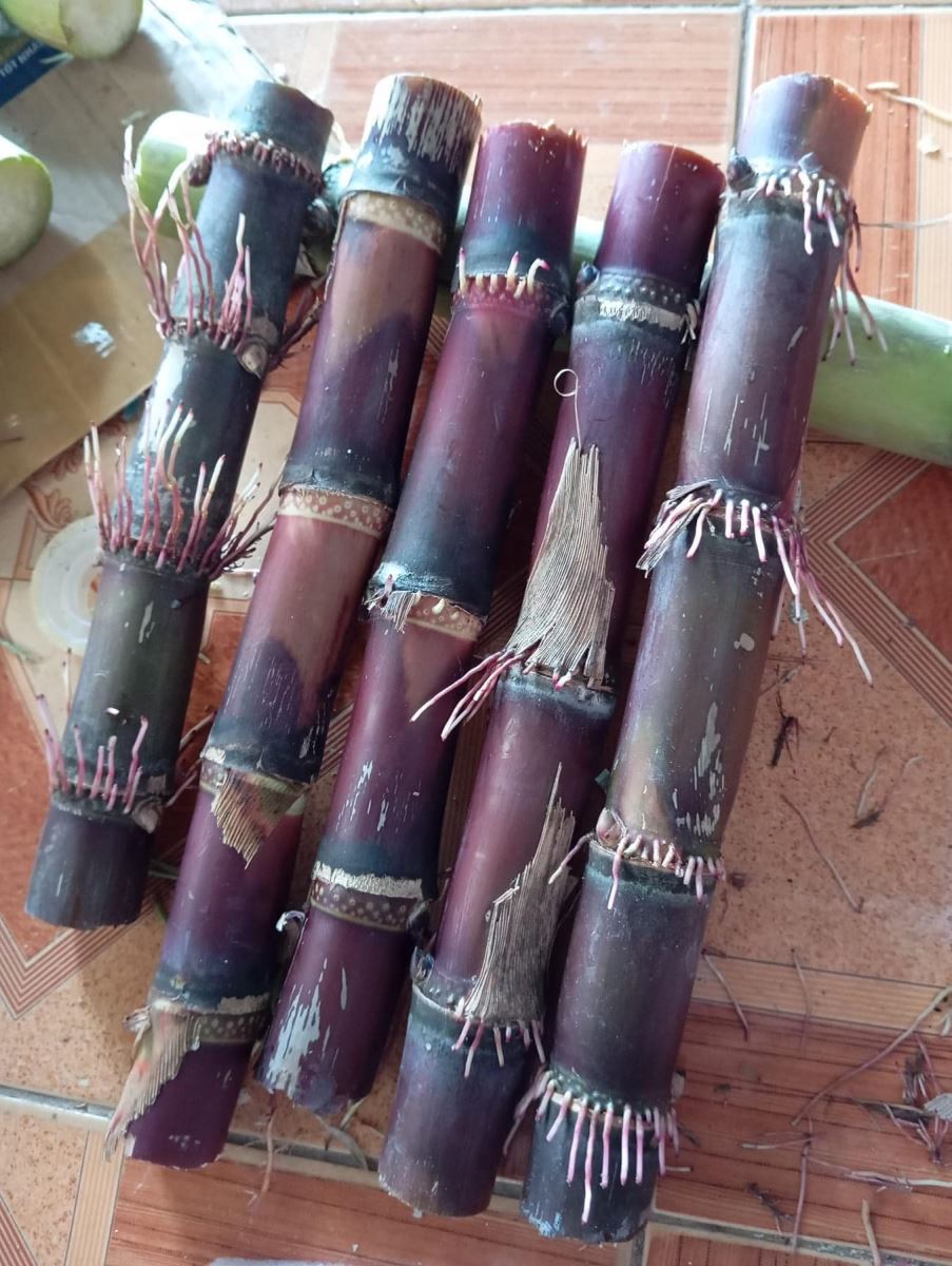 Bệnh thường biểu hiện rõ nhất khi chẻ dọc thân mía. Phần ruột bên trong xuất hiện màu đỏ nâu xen lẫn những vệt trắng chạy dọc thân. Đây là dấu hiệu đặc trưng để phân biệt với các bệnh khác.