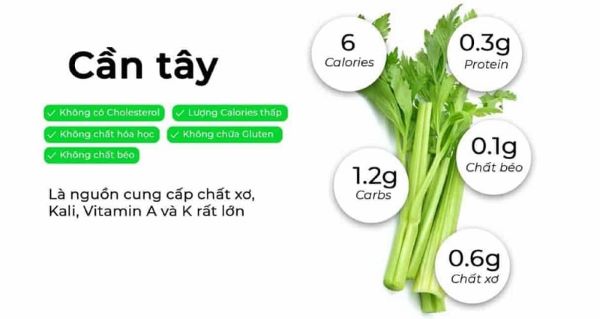 Cần tây là loại rau vừa ngon vừa bổ dưỡng, mang lại nhiều lợi ích sức khỏe từ hỗ trợ tiêu hóa, tim mạch, giảm viêm, kiểm soát cân nặng đến cân bằng đường huyết. Việc sử dụng cần tây đúng cách, kết hợp trong chế độ ăn hợp lý, sẽ giúp cơ thể khỏe mạnh và phòng ngừa nhiều bệnh mạn tính. Tuy nhiên, cần chú ý liều lượng, tình trạng sức khỏe cá nhân và tương tác với thuốc để đảm bảo an toàn và đạt hiệu quả tối ưu.