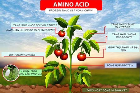 Giúp cây hấp thu phân bón tốt hơn: khi kết hợp với NPK hoặc phân vi lượng, amino acids đóng vai trò như “chất dẫn”, giúp cây hấp thu nhanh, giảm thất thoát dinh dưỡng và tiết kiệm chi phí phân bón.